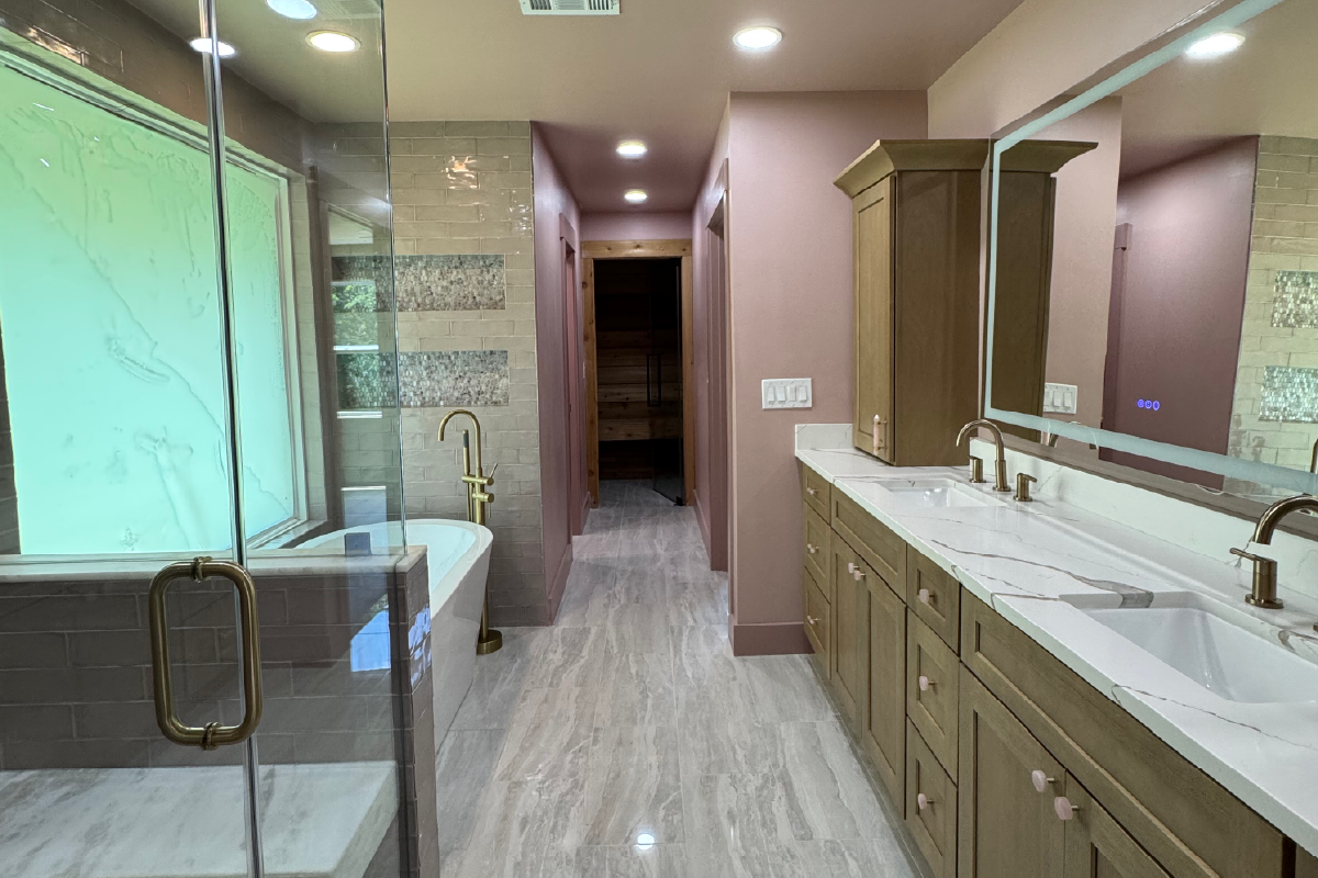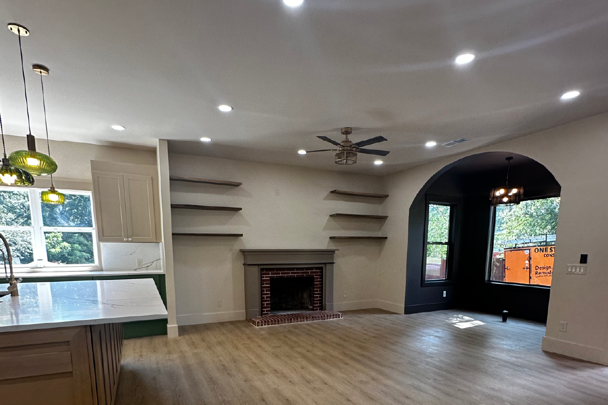 Originally a small, over-divided space with four bedrooms added over time, our client wanted something more intentional a home just for herself, designed with comfort and character. We turned the two back rooms into a spacious primary suite with a full bathroom, private sauna, walk-in closet, and even a built-in laundry area. The former guest rooms remained, now ready for new purposes. We reworked the guest bathroom for better functionality and completely opened up the sunroom and family room, raising the ceiling from 8 to 10 feet to create an airy, open living space. We also added a double garage with direct access to the sunroom and kitchen pantry another wish checked off And to preserve the charm of the original house, we kept the exterior brick walls, and gave the façade a storybook-style curve, just like our client envisioned.